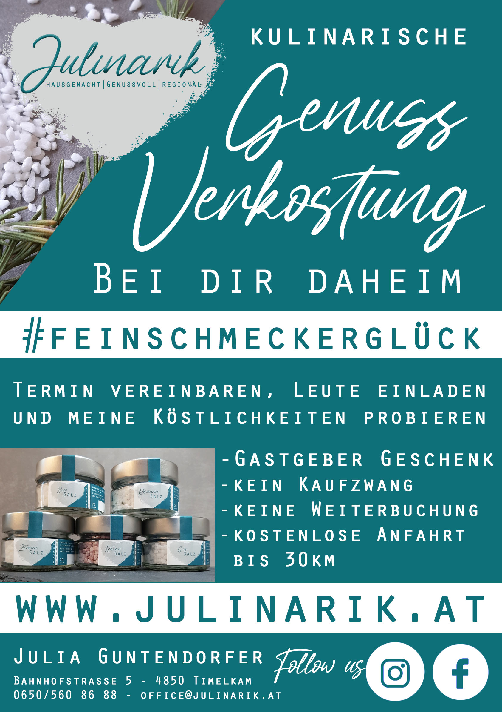 Du hast die Möglichkeit, meine Produkte auch bei dir Zuhause zu probieren. Einfach die Familie oder ein paar Freunde einladen und genießen. Mehr hast du auch gar nicht zu tun, ich bringe alles mit zu der Verkostung.
